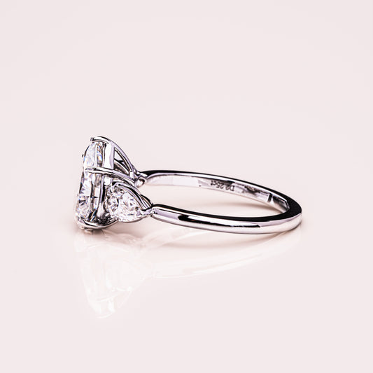3.09 CT Pear Three Stone Lab Grown Diamond Engagement Ring