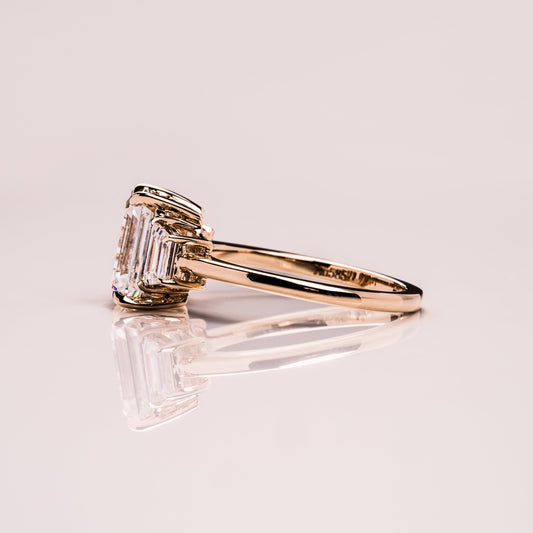 2.1 CT Emerald Three Stone Lab Grown Diamond Engagement Ring