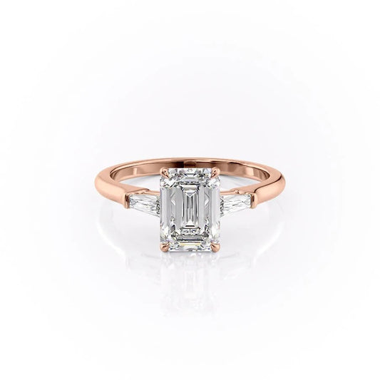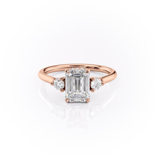 2.1 CT Emerald Three Stone Lab Grown Diamond Engagement Ring