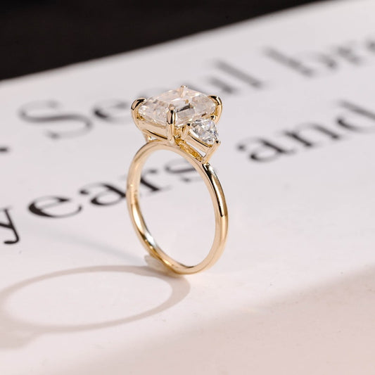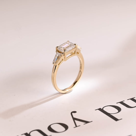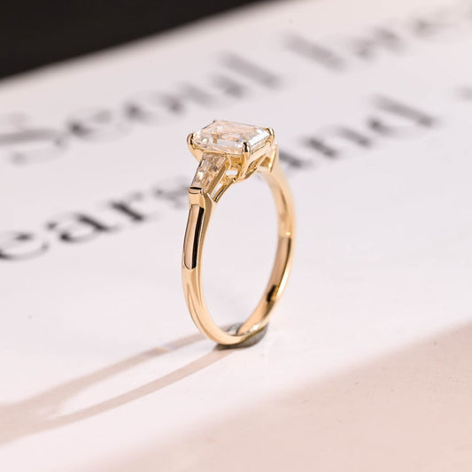 2.0 CT Emerald Three Stone Lab Grown Diamond Engagement Ring